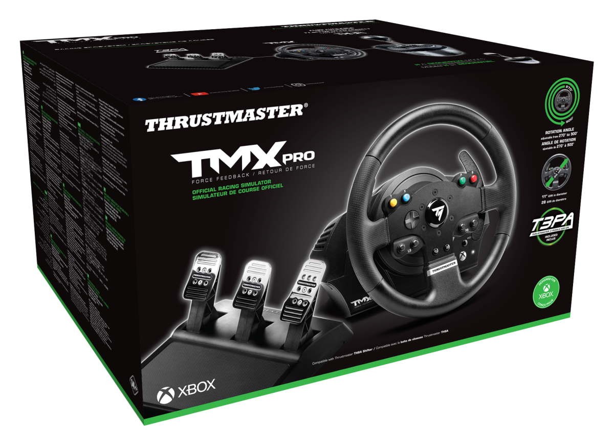 В высшей степени реалистичный руль Руль диаметром 28 см с эргономичным дизайном подходит для любых гоночных игр (GT, Formula 1, NASCAR, RALLY и пр.). Максимальное удобство вождения Руль отличается прочными обрезиненными захватами. Секвенционное переключение передач обеспечивается двумя большими (величиной 13 см) полностью металлическими лепестковыми переключателями, закрепленными на руле. В комплекте педальный блок T3PA с 3 педалями Вместе с рулем TMX поставляется педальный блок Thrustmaster T3PA с тремя педалями, педали и внутренняя конструкция которого полностью изготовлены из металла. Педальный блок T3PA полностью регулируется (по расстоянию между педалями и углу наклона; педаль газа регулируется также по высоте). В комплект входит также опциональный Conical Rubber Brake Mod, обеспечивающий реалистичное ощущение и суперпрогрессивное сопротивление в конце хода педали. Исключительная точность вождения Возможность регулировки угла поворота от 270 до 900 градусов позволяет геймерам с максимальной реалистичностью окунуться в гонку. Высокоточный гоночный руль: оптическое считывание с разрешением в 12 бит (т. е., 4 096 значений на оси поворота руля). Реалистичные эффекты силовой обратной связи Реалистичная силовая обратная связь обеспечивает полноту ощущений во время гонок: рельеф дороги или гоночного трека, потеря сцепления, торможение, неровности, столкновения и пр. Плавная, точная и тихая рулевая система с комбинированной системой с ременным шкифом и коробкой передач. Удобство доступа к органам управления Геймер может никогда не снимать рук с руля благодаря встроенным официальным кнопкам для Xbox One: Xbox Guide, View и Menu. Удобный доступ ко всем функциям общения; переключение между игрой и системой; навигация по меню консоли и пр. Прошивка, сертифицированная для Xbox One Официальная прошивка обеспечивает автоматическое распознавание руля системой Xbox One, совместимость с меню консоли и совместимость со всеми гоночными играми с поддержкой рулевых систем для Xbox One. Совместимость с аксессуарами Thrustmaster Совместимость с коробкой передач Thrustmaster TH8A. В комплекте две направляющих пластины: типа Н (7+1) и секвенционная (+/-)