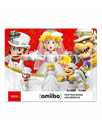 Набор из трех фигурок amiibo: Марио, принцесса Пич и Боузер в свадебных нарядах. Эти фигурки amiibo помогут вам в ваших приключениях в игре Super Mario Odyssey.