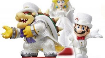 Набор из трех фигурок amiibo: Марио, принцесса Пич и Боузер в свадебных нарядах. Эти фигурки amiibo помогут вам в ваших приключениях в игре Super Mario Odyssey.