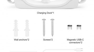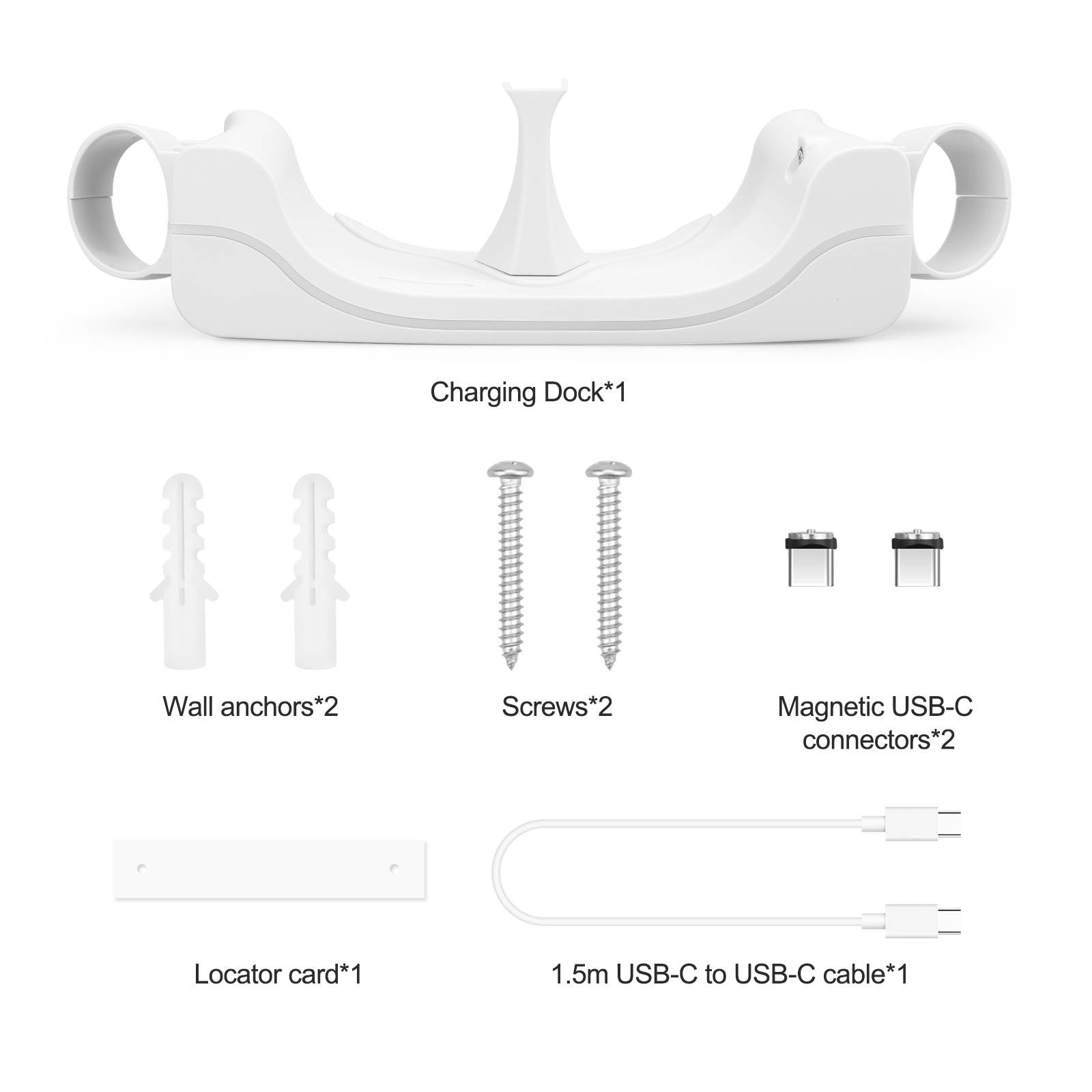 ✅ В комплект входят: – Зарядная станция – Кабель USB-C – Магнитный USB-C x 2 – Винты x 2 – Анкеры для стен – Руководство пользователя