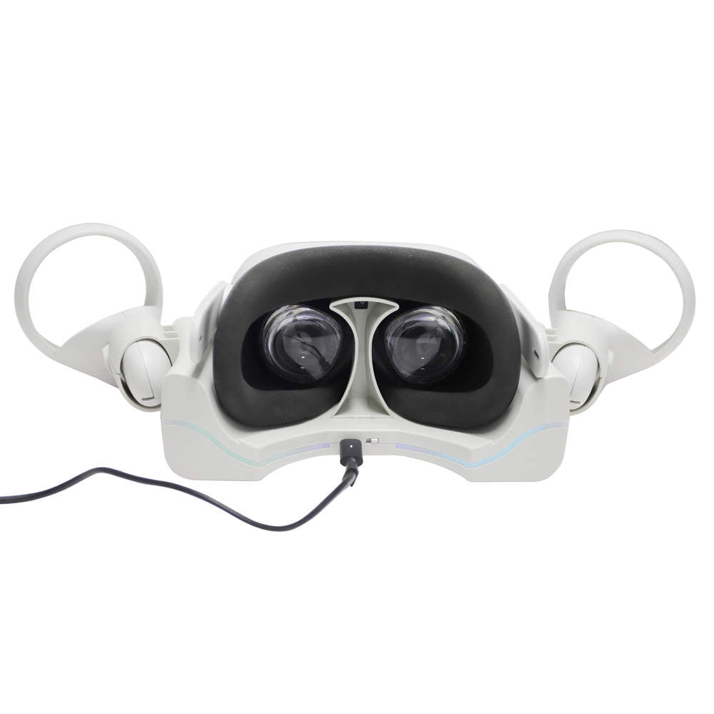 Док-станция гарантирует, что ваша гарнитура Oculus Quest 2 всегда будет готова к игре и полностью заряжена.