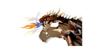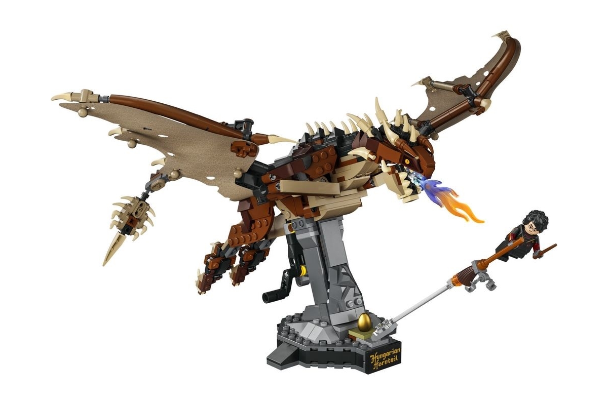 Эта собранная из кубиков модель воссоздает черную чешую, шипастый хвост и огненное дыхание венгерской рогатого хвоста. Это культовое существо не только интересно собирать, но и впечатляет — дети также могут управлять его реалистично сочлененными крыльями. Ручка сзади заставляет крылья изящно взмахивать вверх и вниз, демонстрируя полный размах крыльев зверя более 15 дюймов (40 см). Коллекционная фигурка стоит на прочной основе и сопровождается минифигуркой Гарри Поттера верхом на метле. Волшебство продолжается с бесплатным приложением «Инструкции по сборке LEGO», которое позволяет детям масштабировать и вращать модель во время сборки.