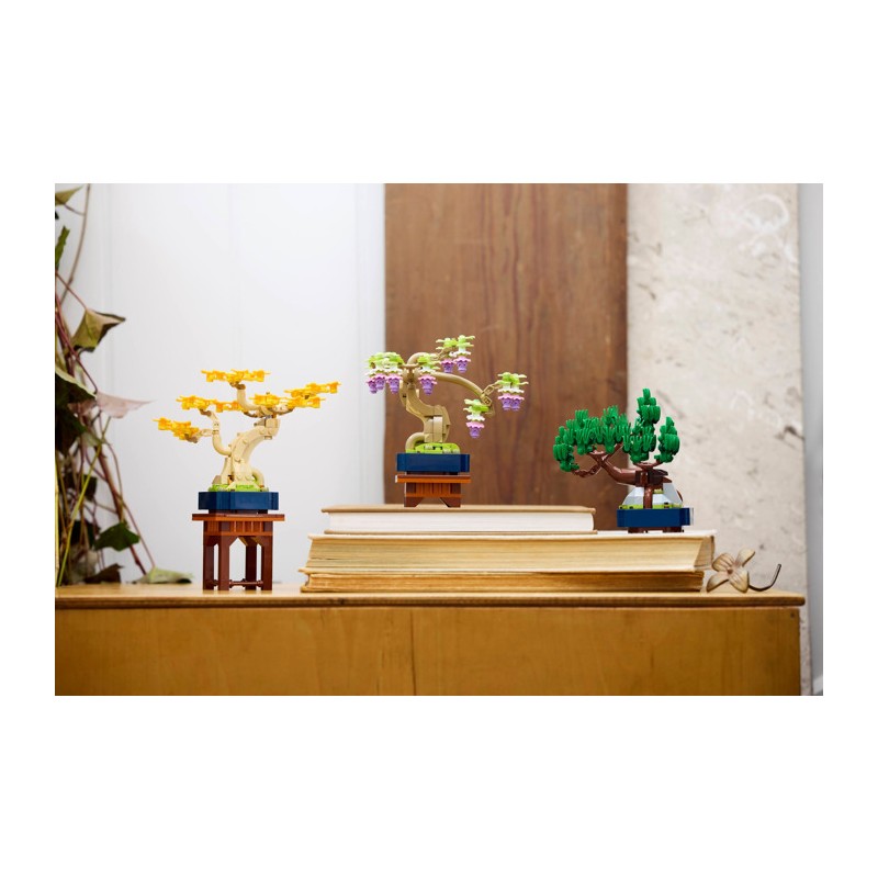 Расслабьтесь и отдохните, собирая три изящные модели бонсай: гинкго с жёлтыми листьями, чёрную сосну с зелёной хвоей и глицинию со свисающими сиреневыми цветами. У каждого мини-дерева сменная листва, так что вы сможете пробудить в себе внутреннего художника бонсай и персонализировать свои творения, меняя листья. В набор также входят две декоративные подставки, которые позволяют размещать бонсай на разной высоте и в разных сочетаниях, превращая их в великолепные декоративные растения.