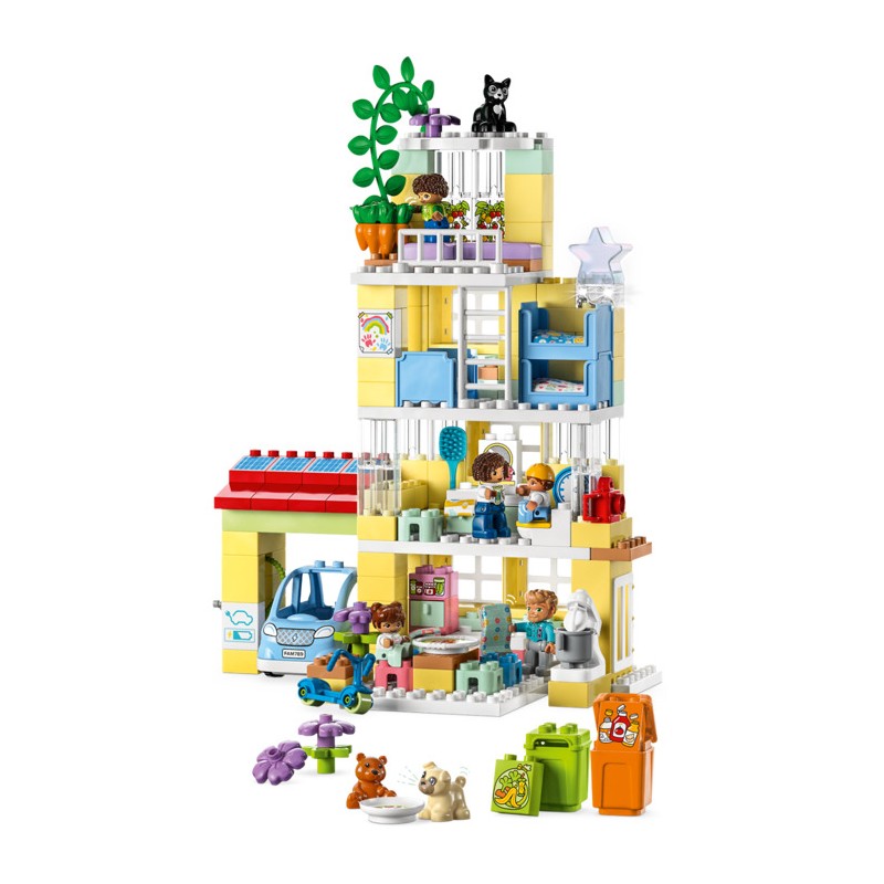 Добро пожаловать в набор LEGO DUPLO Town 3in1 Family House (10994), где детей ждет мир обучения. Этот домик, наполненный аутентичными деталями, позволяет малышам в возрасте от 2 лет и родителям разыгрывать драгоценные семейные моменты. С 7 фигурками родители могут обучать малышей социальным навыкам, в то время как дети пробуют свое собственное самовыражение.
